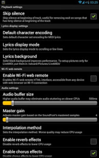Karaoke Live MIDI Player พร้อมใช้งานสำหรับ Android 9.0 ขึ้นไป เวอร์ชันปัจจุบันของโปรแกรมคือ 1.8.4 และคุณสามารถเรียกใช้ได้ในภาษาอังกฤษเท่านั้น